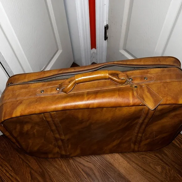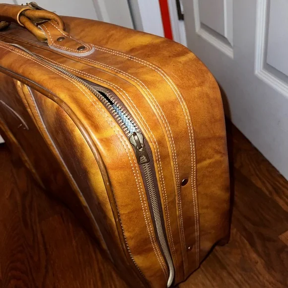 Really good condition is older so does have a spot on the side where zipper gets stuck (but can be fixed and doesn’t always give me problems)Brown tan luggage suitcase from the 70s Lots of room inside and i also have a small carry on travel bag that is part of the set 🙂Can bundle together but let me know or add each item to bundle together