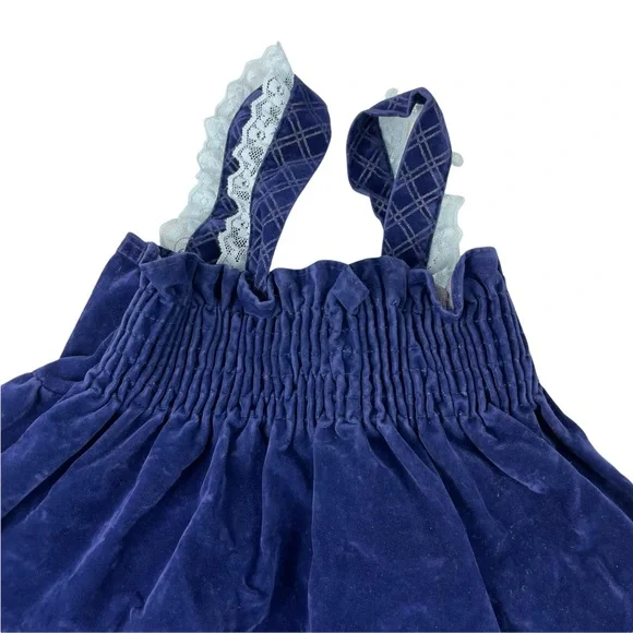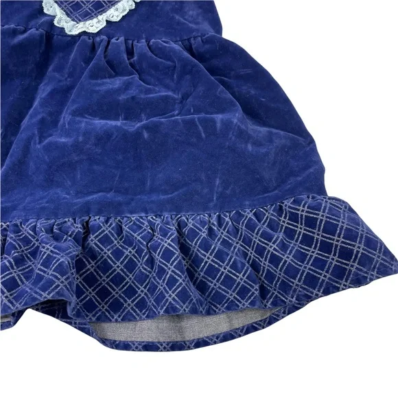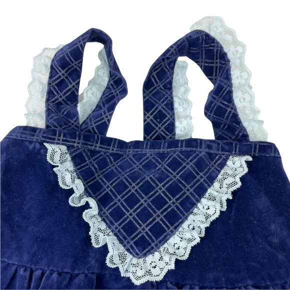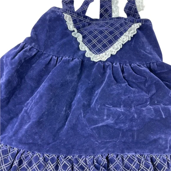 Brand: JC PenniesCondition: Excellent Used Vintage! This is beautiful!Size: 2T This Made in the USA circle dress is ready for a new home! A fun blue velvet with light blue lace on the straps! This is from the 1980s and is in amazing condition for the age! This would make a fun gift for someone expecting a little baby girl or an addition to your own child’s vintage collectors wardrobe!RFD